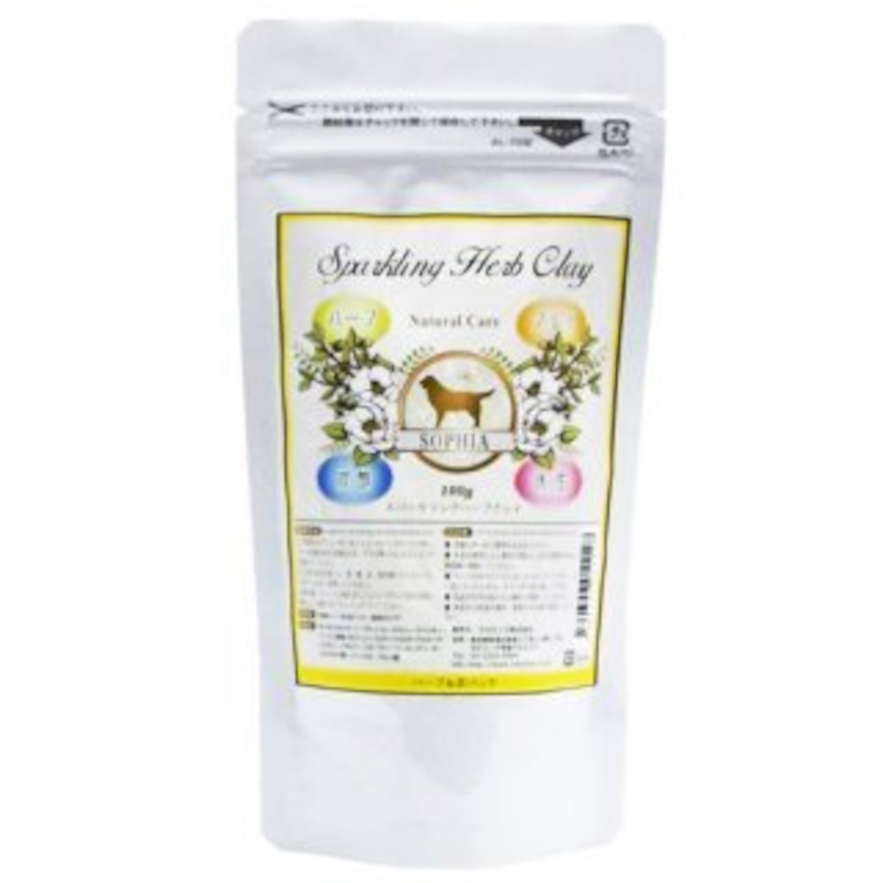 ソフィアのスパークリングハーブクレイは、天然ハーブと炭酸、そしてミネラル成分豊富なクレイ(粘土)が最適に調和した皮膚被毛にやさしいナチュラルハーブクレイパックです。